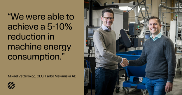 Through their optimization of machine usage, Fårbo anticipated a more efficient utilization of energy consumed by the machines. Vetterskog shared this initiative will help them to achieve a 5-10% reduction in machine energy consumption.