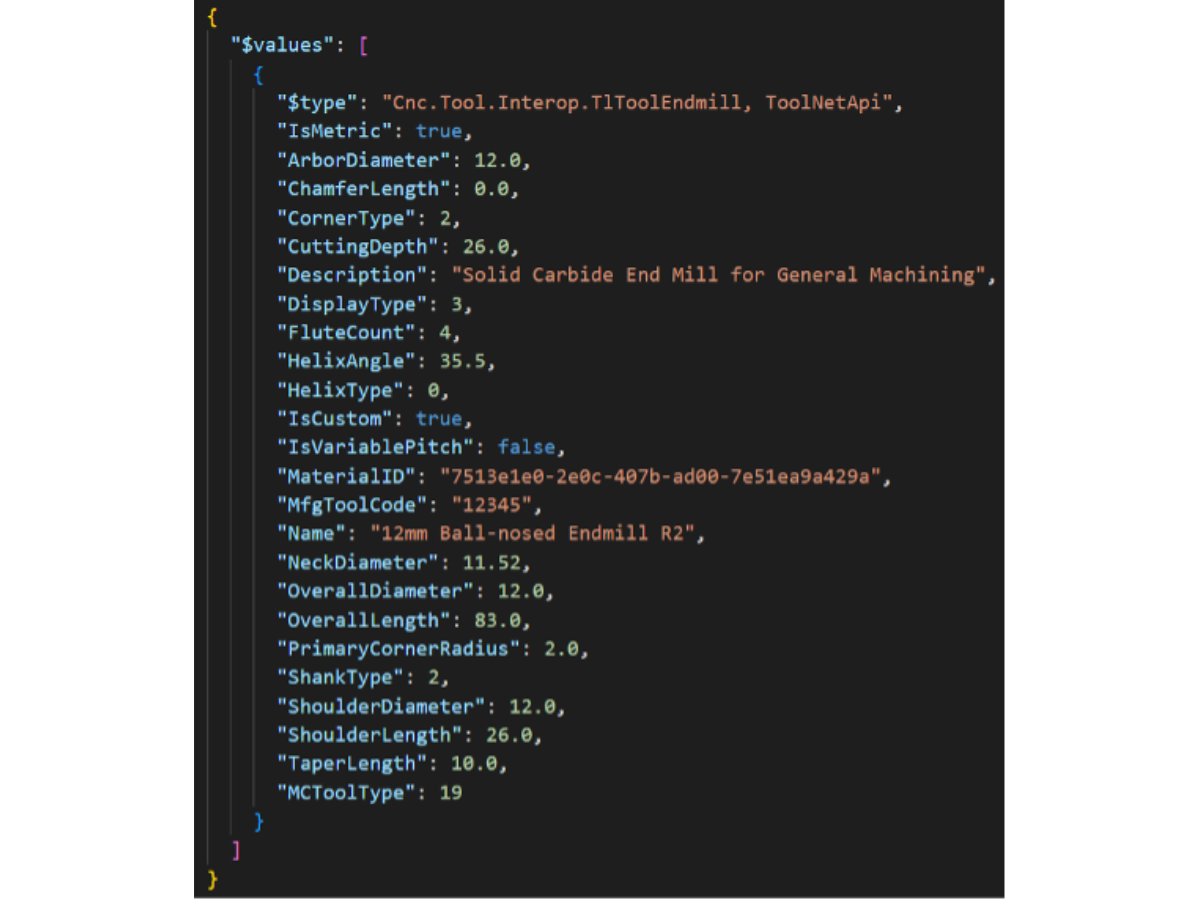 As mentioned earlier, every tool vendor has digital tool data. While some have gravitated to ISO 13399, many still have tool data in proprietary formats. For this reason, Mastercam has developed import tools that use JSON to map vendor data to native Mastercam libraries. The vendor’s tool geometry is supplied in STEP or DXF format which are widely available. All other properties are represented in JSON.