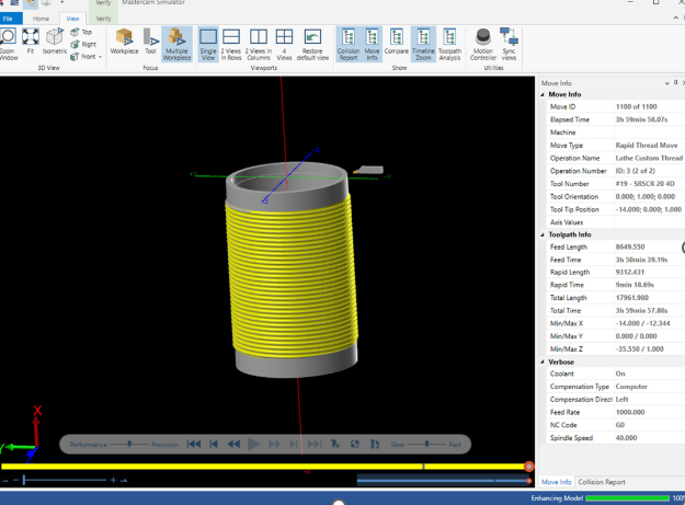 To guarantee precise shaping according to their requirements, Roberts and his team depend on Verify, a feature provided by Mastercam. Verify helps programmers avoid tool collisions by allowing them to verify for potential damage, examine the part's final shape, and visualize the inclusion of fixtures through its simulation screen. This capability enhances productivity and enables them to address issues before cutting the parts.